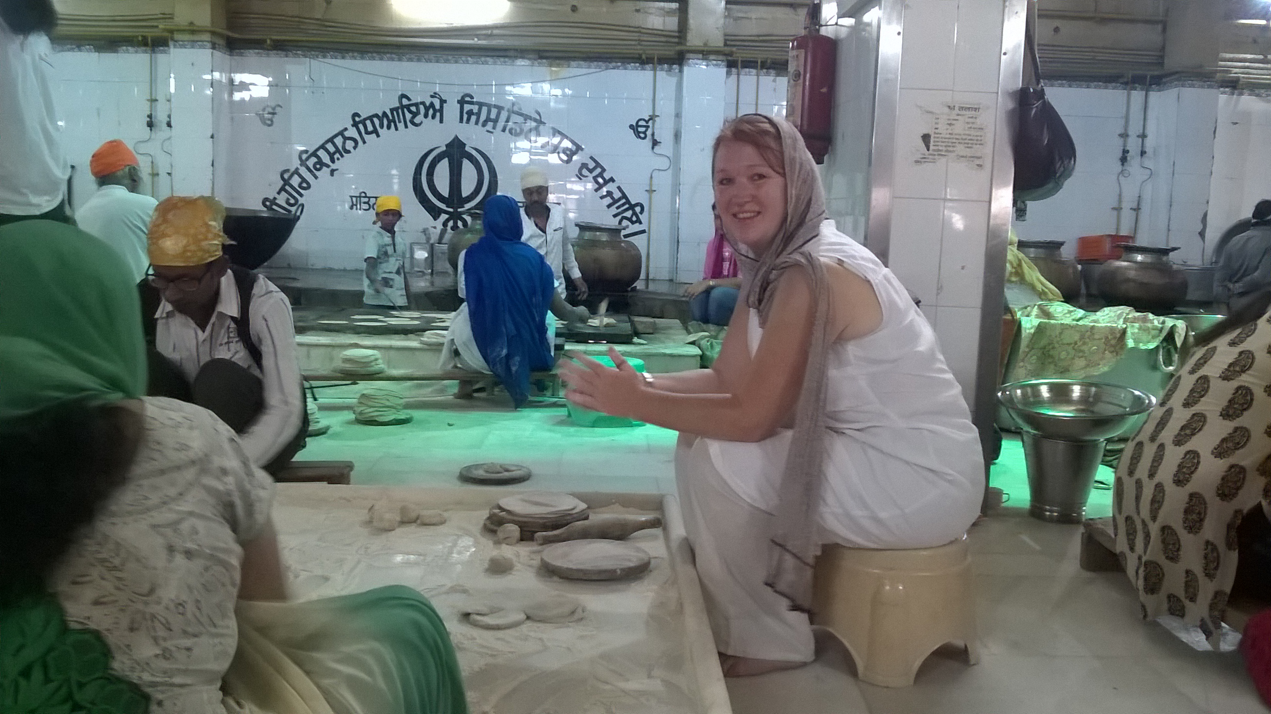 This week, I went out discovering Delhi, as I do. One of my visits was to the Bangla Sahib Gurudwara, perhaps the most famous Gurudwara in India, outside of Amritsar. Here they also feed thousands of people every single day, and so after doing the usual rounds, I ventured into the kitchen which is run solely by volunteers. Feeling that I should do my bit, not merely be a voyeur, I sat myself down amongst the women (and men!) who were rolling rotis. No one even blinked. In a country where I am used to be constantly stared at, I blame it on the red hair and freckles, this was a revelation which immediately gave me a feeling of acceptance.