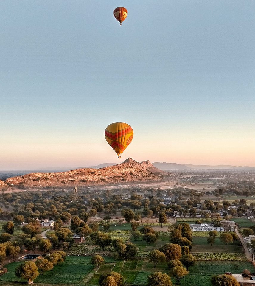 Oh my word it’s huge! Was my first thought on seeing it, semi inflated, stretched out along the ground, a team of people basket end, directing fire up its bottom. Tea and biscuits were laid out for us and we grabbed some and then wondered down to where our pilot was preparing for the flight. My friend terrified of heights (to be fair I should have checked before springing it on him) had to be forced into the basket but no sooner was he ensconced than he was as captivated as I was. The take-off was so gentle as to be barely perceptible and we gradually started to drift across the fields, slowly gaining height as we went. A little too slowly as it turned out, we just tipped the ridge of a low lying wall, the others gripped on terrified, the pilot winked at me, to be fair, we were barely two feet off the ground, what could happen? The sun was climbing above the hills and people were starting to go about their daily chores as we glided silently over the roof tops. Of course, this being India, roof tops are a hive of activity, one man didn’t seem to object as we cast a shadow over his morning yoga session, women waved as they lit the morning fires for chai, and children jumped and squealed and waved with extraordinary levels of excitement as we passed by. I was astounded by how close we were, to the people and villages below, dogs barked, we startled the odd cow, old ladies peered up at us in awe, and groups of children gathered and ran behind us as we gently floated by. A wonderful start to the day and a unique perspective of the countryside, brilliant photo opportunities and one of the most extraordinary sunrises I have witnessed in India. You can find more details at www.skywaltz.com ; goballooning@skywaltz.com or call: +91 9560397222