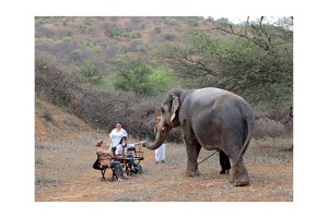 – Elephants are two a penny in Jaipur but I have always detested the elephant ride to the Amber Fort, that isn’t how elephants, even domesticated ones should be making a living. So come and meet, Udaijit Singh who, having refused to sell the family land to developers to build yet more hotels in this over accommodated city. Instead, he adopted a couple of elephants, giving them a much more natural environment to work in, built a colonial style pavilion replete with bar, some thatched dining areas (both for groups and individuals) around the land and started Dera Amer, just half an hour away from the city (just beyond the Amer fort) yet a world away. Turn up for lunch or dinner, spend some time with your elephant, feed them bananas (what else?) and then take a leisurely stroll around the countryside either on them or alongside them, your choice. It is a sedate amble through the scrub of the Rajasthan forest, the bird life is wonderful, the peace and quiet even better, barely perceptibly punctuated by the occasional deep belly rumble from your pachyderm. After the safari (evenings are better), enjoy a drink or two as the sun sets and then enjoy a dinner under the stars served by his staff, all from the local villages and resplendent in their vibrant orange turbans.