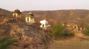It took 5 years to pin down a date, once gain almost missing the winter season but the wait was worth it. We started early morning from Amer Village, a short walk brought us to to a small temple with a most amenable priest who insisted on providing a breakfast of chai and ladoos. Vineet has a way of befriending everyone on his walks and so one always has wonderful encounters when exploring with him. Suitably refreshed, we continued on. Just beyond the temple the view opened up, the Aravallis in front of us and a row of chattris to the left, each having a peacock (and real ones at that) perched perfectly; a magazine shoot couldn’t have planned it better.