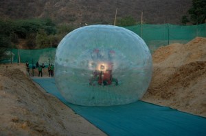 Have you ever wanted to throw yourself completely encased in a giant plastic ball, down a hillside? No? Seriously, the thought has never occurred to you? Then it must. Zorbing is on offer at Tao Experiences on the outskirts of Jaipur. Wishing we’d stopped at just two bottles of wine the night before, we climbed into the orbs rather apprehensively at the top of the slope. It is hilarious, as long as you can hold onto the contents of your stomach, one feels weightless (always a bonus) and as if one is defying gravity as one tumbles head over feet down the slope coming to an unceremonious stop at the bottom. Yet despite this, one can’t help but giggle and one time, on the rather too short run is not quite enough. However, zorbing is only one experience on offer at this ‘adventure’ destination and they really have thought it out well so that there are activities for everyone from kids (as young as 4 years old) to grown up kids alike.