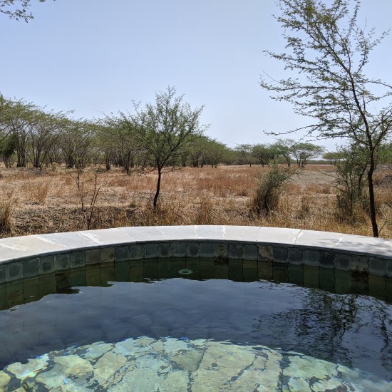 What the Blackbuck savannah lacks in size in comparison to Africa, it certainly makes up for in style with the Blackbuck Lodge. The brainchild of Mickey Desai who had a vision to being a world class lodge to this little-known national park, and he has succeeded, spectacularly. From the moment one arrives one feels as though they have arrived, if you know what I mean? The reception area, smart, welcoming and above all, saying, safari! The tented lounge area replete with comfortable sofas, and tables scattered with coffee table books overlooks a waterbody where nilgai and blackbuck venture in their numbers to drink.  The restaurant offers both indoor and outdoor dining, fabulous food and attention to detailing in the signature crockery and signature dishes that the chef conjures up. The rooms are spacious, comfortable and incredibly well designed, each with a verandah overlooking the savannah at the back and where one can idle away time between safaris, brilliantly ignoring a good book as the blackbuck and nilgai delicately pick their way past, and the birds go about their daily chores, swooping and chattering as they do.