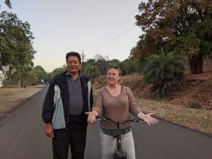 Now this is the centre of central India and hardly anyone one knows I’m in Bhopal. I apply the brakes and turn around only to discover it’s Pramod Sharma whom I first met 10 years ago in Satpura National Park. I’ve always maintained that India is a village. Wildlife chat ensued, there are never enough hours in the day for that, and then it was time to complete my ride, one end of the park to the other. I returned to the unfailingly wonderful Jeehan Numa Retreat for a typical Bhopali breakfast of poha and jalebi in a stunning setting and actually feeling like I’d earned it!