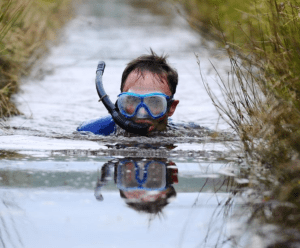 But what is Bog Snorkeling? I hear you ask. Well, let me enlighten you. It is an event where competitors wearing a mask & snorkel (and as much or little else as they choose) and propelled solely by flippers attempt the fastest time through a 55m trench cut through a peat bog. The event was apparently conceived in the local pub in 1976 and slowly gained in popularity to become a world event in 1985. It didn’t take place in 2020 but is scheduled to take place in 2021 as usual on August Bank Holiday Weekend and I have to admit to being tempted to return, possibly to take part. There’s also a prize for the best dressed bog snorkeler, the mind boggles.