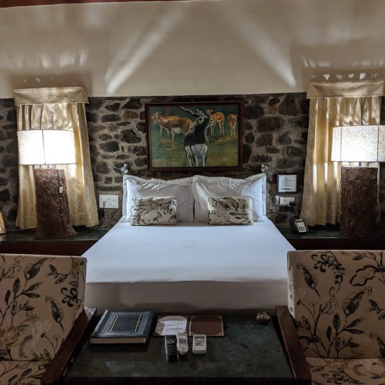 This lodge is as unique for Gujarat as the Velavadar National Park and the two marry superbly. The Blackbuck National Park at Velavadar is not only one of India’s smallest National parks at a mere 34.8kms, it is one of India’s last few remaining protected savannah’s or grasslands, giving it what feels like a little piece of Africa in India and it’s a great conservation project. What is fabulous about this park is that it is off the beaten path, there’s no multitude of hotels and jammed safari bookings oh, and that thing I said about no landmark hotels in Gujarat, well, this one might just have bucked that trend. I remember thinking 20 years ago that if only India could bring luxury, world class, African wildlife style lodges to India, it’s wildlife tourism would take off. Don’t shout at me for wanting Africa in India, at that time I was working alongside a luxury African specialist safari company, I saw the types of accommodation they were offering, I had just been on my first safari trip in India and saw what was being offered there. The two were poles apart. The gap has now closed and there are some fantastic lodges out there but, whether because of the surrounding atmosphere of the African Savannah or just because of its style in it’s own right, but Blackbuck Lodge is probably the closest to a luxury, African safari lodge that I have come across in India.