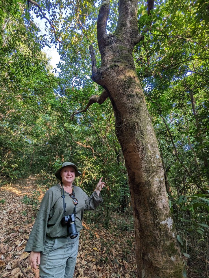 In whispers, he told me about plants such as citronella, and wild cinnamon, which plants are poisonous and which animals like what. We stopped to watch mud bees and dancing dragon flies and listened to an elephant moving around quite close by, whilst Malabar Squirrels had a chat across the tree tops. He showed me Sloth Bear scratch marks on a tree trunk, elephant poop, though it is big enough to trip over, and more tiger scat than you can shake a stick at, that’s poo, to you and me. Did I mention exhilarating? That doesn’t quite cover it.