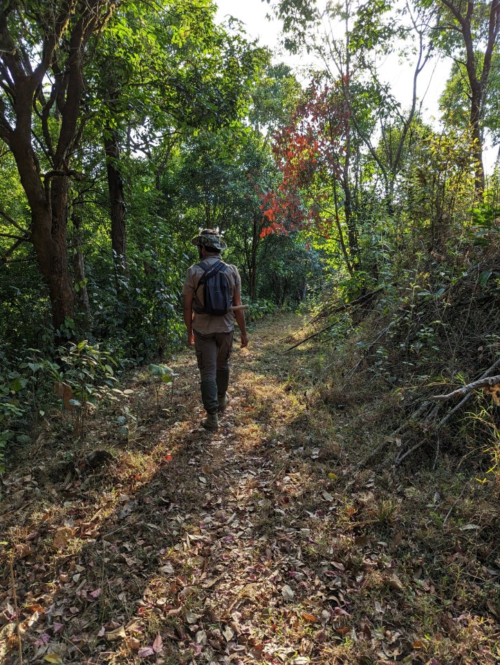 The first Shaji bombshell came as I was exclaiming over the view. We’d just met. A tiger had killed a deer right in front of the lodge two days before and dragged its kill downstream. “We’ll take a walk that way tomorrow,” he said, “and see if we can find it.” And with that, he sauntered off to see about chai, leaving me standing there aghast, wondering if I’d heard him right. When he came back, I checked, and he confirmed with a casual shrug and a ‘Yes, why not? You’re okay walking, right?” My face broke into the widest smile it’s seen in years, bubbles of excitement coursed through me, and I nodded frantically, like something deranged, ‘Yes, yes, absolutely!’